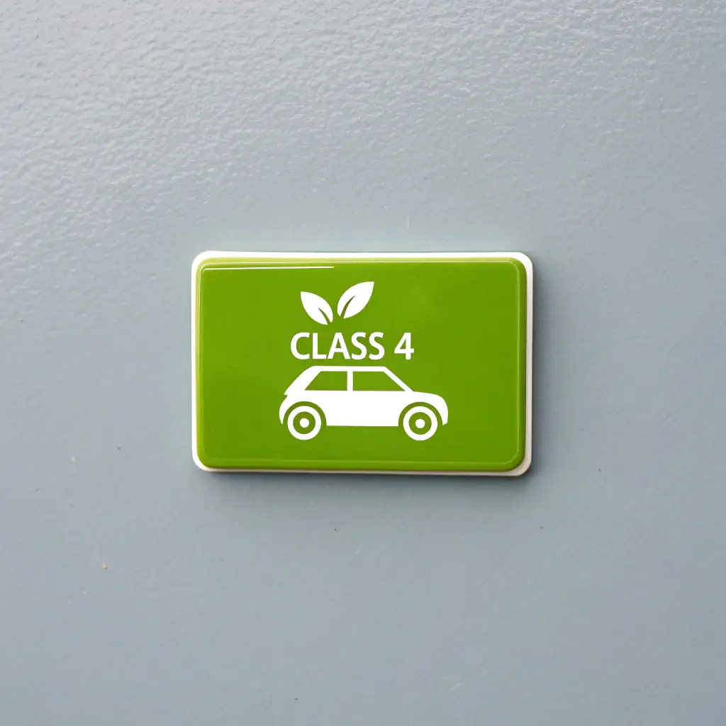 Die grüne Umweltplakette Klasse 4 ist für emissionsarme Fahrzeuge konzipiert und ermöglicht den Zugang zu Umweltzonen in Deutschland. Hergestellt aus strapazierfähigen, wetterfesten Materialien, gewährleistet diese Plakette die Einhaltung der lokalen Umweltvorschriften. Sie zeichnet sich durch eine leuchtend grüne Farbe mit klarer Beschriftung zur einfachen Identifizierung aus. Ideal für umweltbewusste Fahrer, die mühelos durch Umweltzonen navigieren möchten.